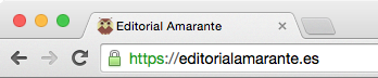Como puedes comprobar en tu navegador la dirección de la web de Editorial Amarante comienza con https:// y muestra un candado verde que indica que el sitio es seguro:
