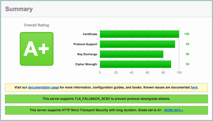 Además, auditamos regularmente la conexión HTTPS de nuestra web en Qualys SSL Labs para asegurarnos de que cumple con la máxima seguridad: